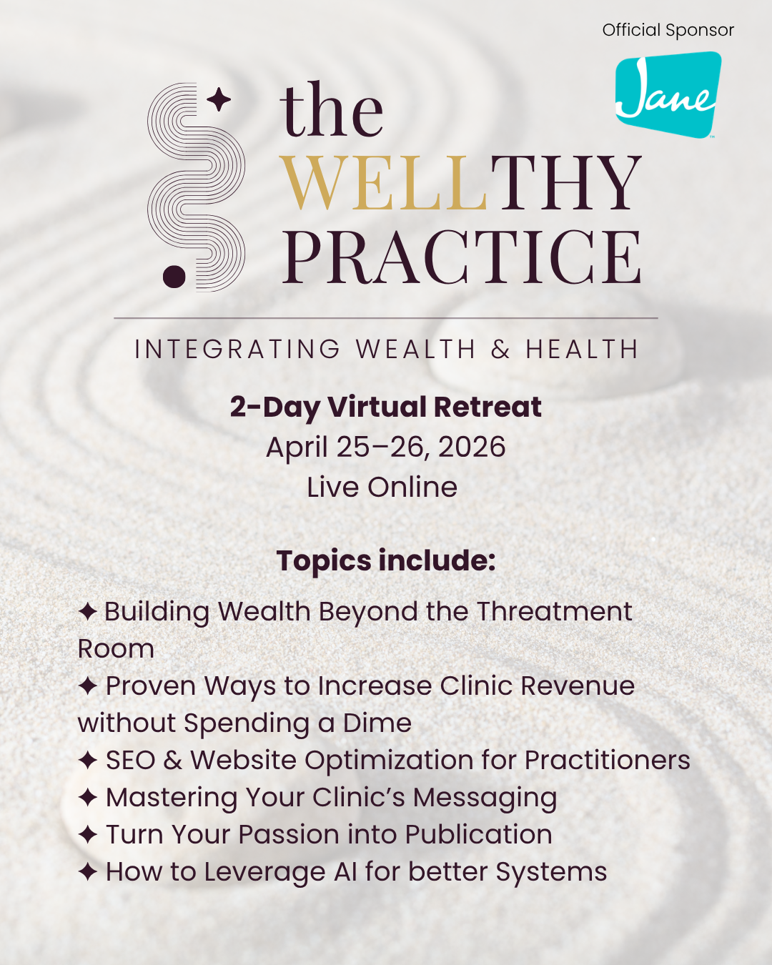 Join us at The Wellthy Practice Retreat April 25-26, 20263 Credits with NMOS